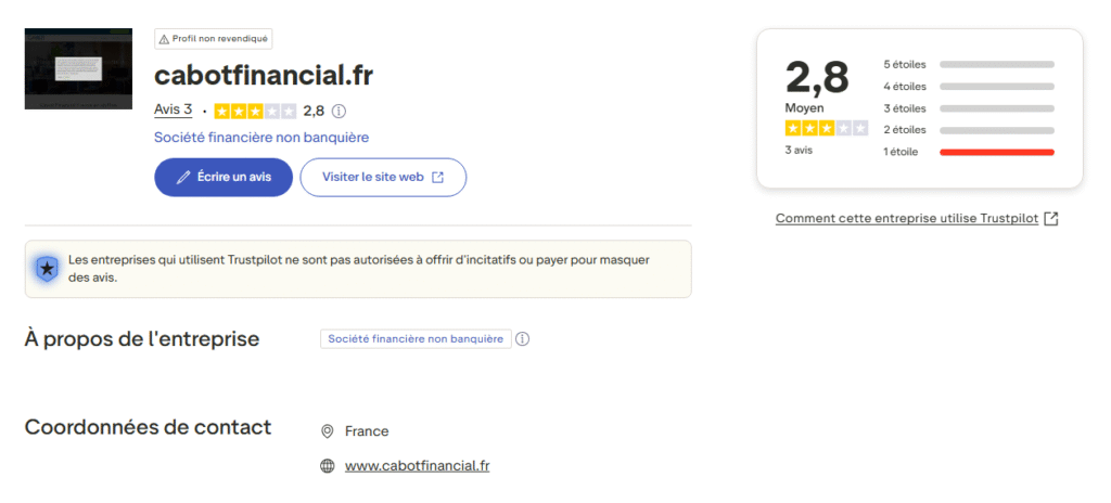 Avis de Cabot Financial France